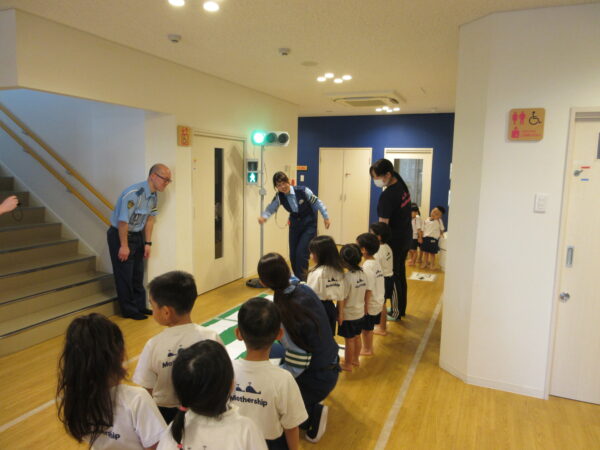 とびうお組~くじら組のお友だちが交通ルールの人形劇を見たり、実際横断歩道を渡りました!