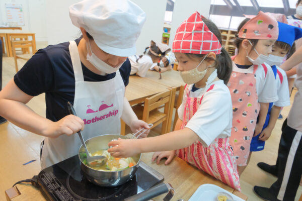 くじら組さんが待ちに待ったお泊り保育「まるごとくじらぐみ」が開催されました。今年度のくじら組さんは、緊張の方が強かったようで始まるまでは少し不安そうな表情をする子もいましたが、いざ始まると楽しい!嬉しい!次は何をするの?!とワクワクが止まりませんでした。
