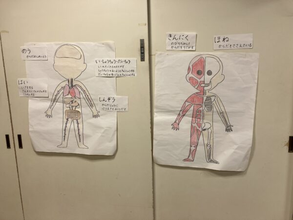 模型のイラストを用いて自分たちの体の中がどうなっているのかを学びました。