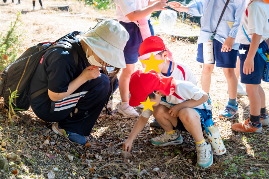 どんぐりや栗のトゲトゲ(イガ)、バッタやコオロギ、トカゲなど自然ならではの出会いがたくさんありました。