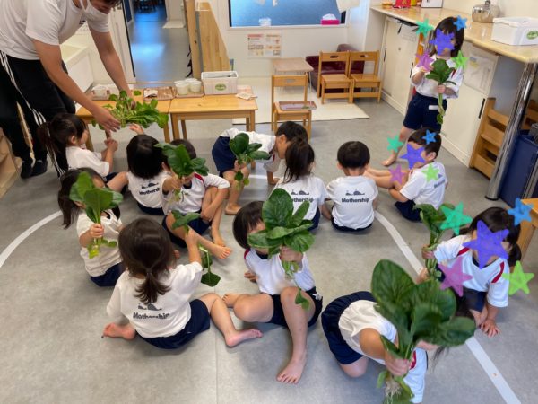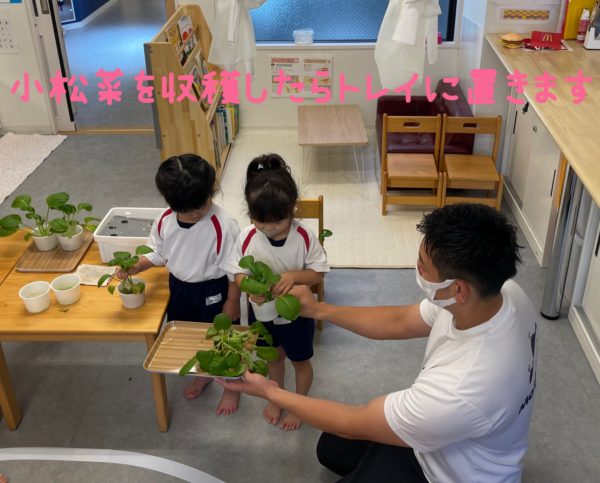 とびうお組さんが愛情たっぷりに育てた小松菜を収穫しました。