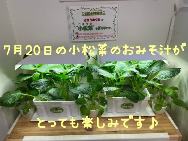 そのあと、7月20日のおみそ汁の具にしてもらうために、給食室の先生に小松菜を持って行きました。